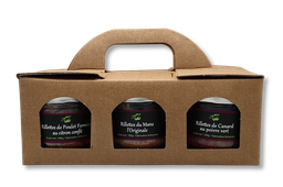Coffret 3 confitures myrtille, figue noisette, griotte 780g X6
